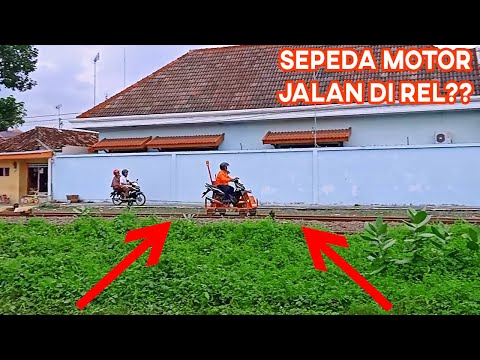 Petugas sedang memeriksa rel menggunakan Sepeda Motor yang dimodif bisa jalan di rel. Ini saya ketemu ketika masuk Stasiun Probolinggo. Setahu saya ...