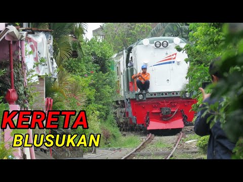 balaiyasa #blusukan #keretaapi kereta api keluar dari balai yasa Pengok dan blusukan masuk kebun dan juga perkampungan.