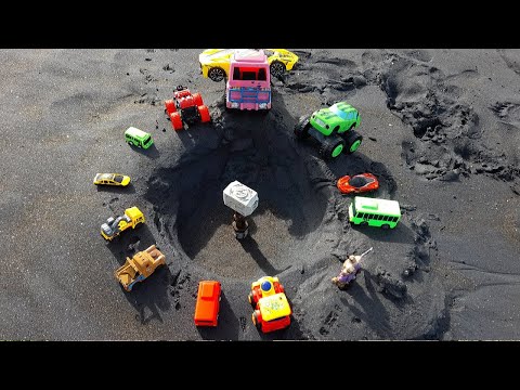 Menemukan mainan dalam pasir, kereta api, mobil jeep, balap mobil, beko, crane, tayo, mobil polisi Kita akan unboxing mainan, main mobil remot kontrol dan ...