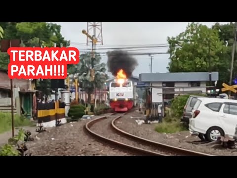 LAGI!! LOKOMOTIF KEBAKARAN KELUAR API DARI CEROBONG SAAT BERANGKAT STASIUN Lokomotif jenis CC 203 memang terkenal sering ...